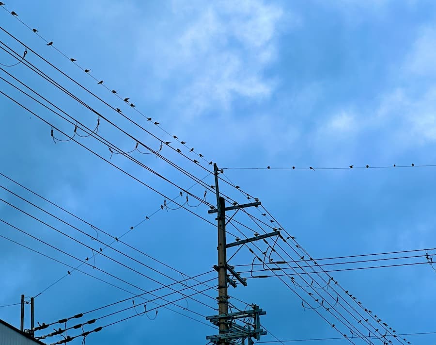 昼間は虫をたくさん食べて体力をつけ、夕方になると電線や木の枝にびっしりと並んで休みます。