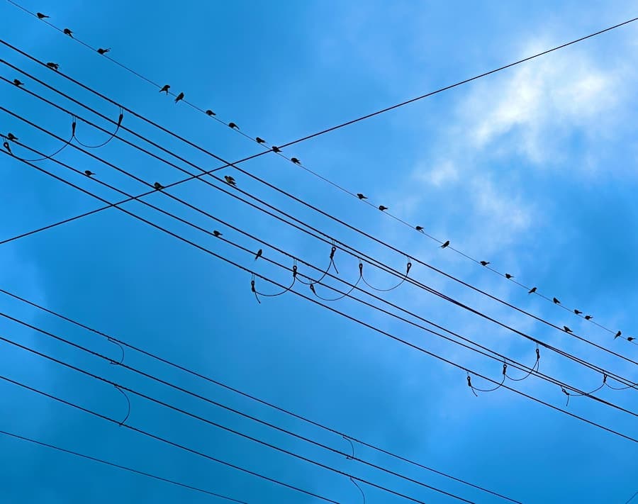 ここ数日、空を見上げると、電線にたくさんのツバメが並んでとまっている光景を見かけます。