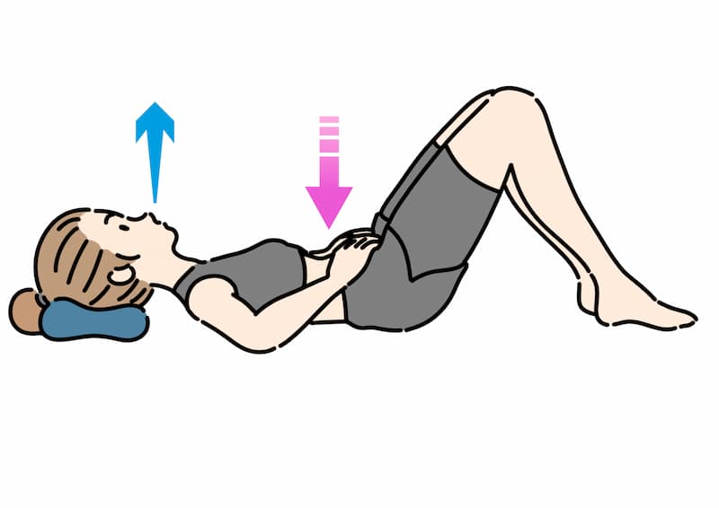 2)ドローイン(お腹を軽くへこませる呼吸)